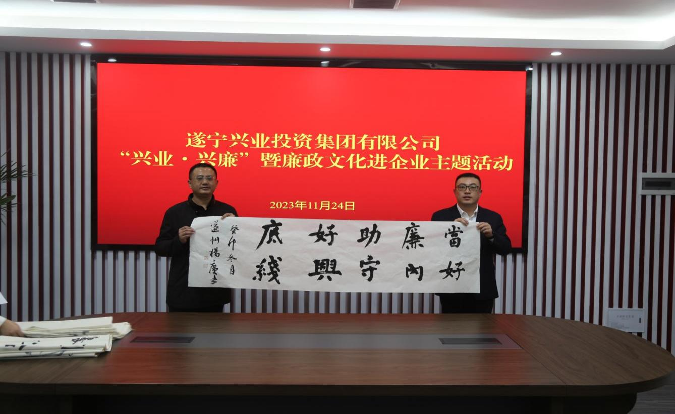 11月24日,遂宁兴业集团联合市书法家协会开展“兴业 兴廉”暨廉政文化进企业主题活动,创新形式教育引导党员干部以廉洁文化正心明德、树廉洁从业新风,进一步弘扬廉洁文化、筑牢廉洁防线,奋力营造学廉、知廉、崇廉、践廉的良好氛围,持续推动廉洁理念内化于心、外化于行,助力清廉国企高质量建成建好。