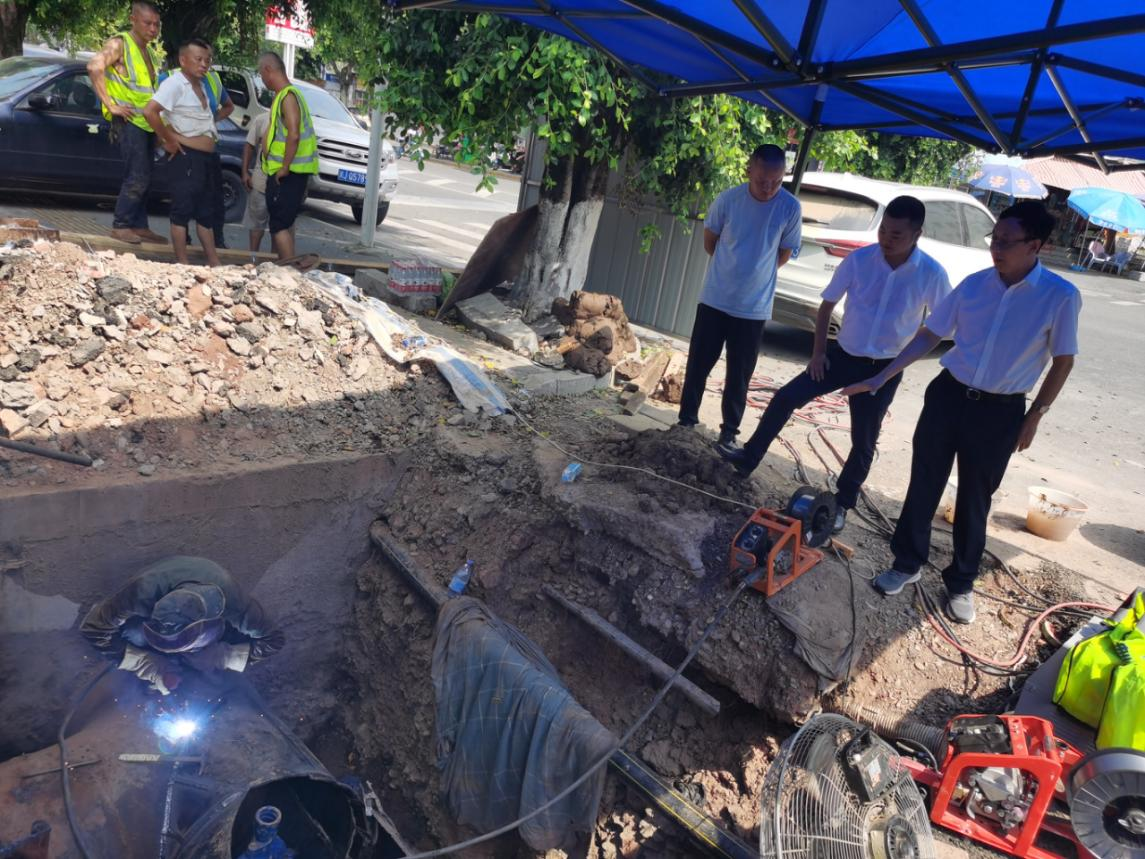 发展水务公司党委书记、董事长兼总经理蒲彩平带领公司相关负责同志现场督导碰管工作
