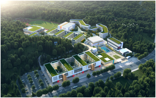该项目位于遂宁市高新区西宁街道徐家堰村,工程总建筑面积91975㎡,校区规模按照100班5000人计列。工程由教学楼、科技综合楼、行政楼、学术交流中心、报告厅、宿舍区、食堂、体育馆等组成。设计理念体现出自然与科技的融合、传统与现代的融合、建筑和教学的融合等特点,设计方案充分采用了海绵城市、活动平台、架空连廊、雨水花园等手段,提高了项目用地的使用效率,拓展了学生的活动范围。