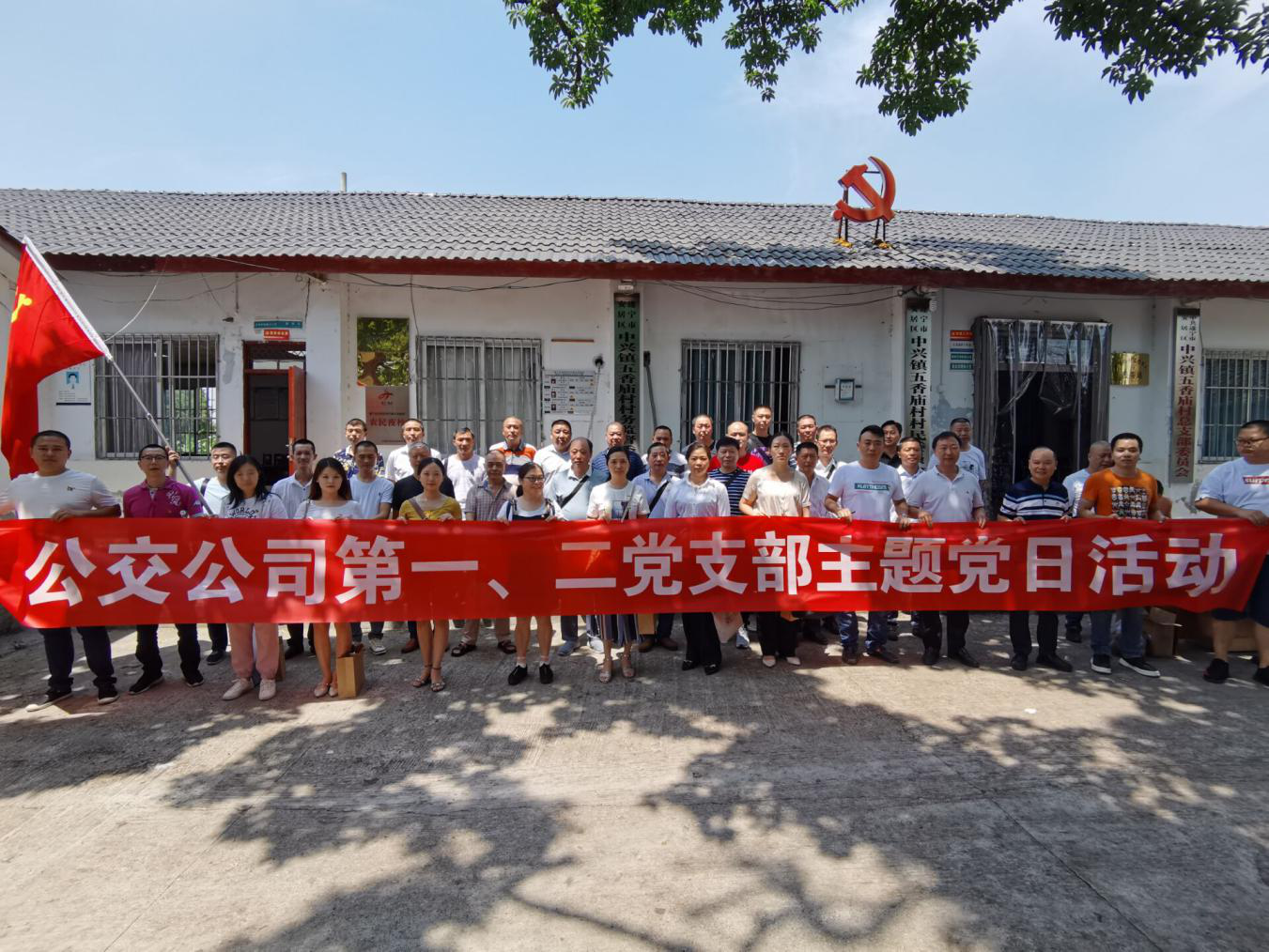 2020年6月5日,在中国共产党诞辰99周年来临之际,市公交公司第一、第二党支部全体党员来到公司帮扶对象安居区中兴镇五香庙村,开展以"党的光辉历程"为主题的党日活动。 在党员活动室,全体党员列队面向党旗重温入党誓词,缅怀党的历史,进一步坚定理想信念,不忘初心、牢记使命,永葆共产党员先进本色。随后,全体党员结合实际畅谈工作作风、责任担当、扶贫心得等,并展示脱贫成果,会场氛围其乐融融。 会议结束后,公司第一、二党支部开展了"以购代扶"活动,全体党员自愿认购鸡、鸭、鹅、七彩菊、红薯等价值6000余元的农产品。 此次活动以党建为主线,以扶贫为主题,引导党员干部职工充分发挥党员先锋模范作用,以实际行动促进五香庙村农产品稳定销售和贫困群众持续增收,助力中兴镇打赢疫情阻击和脱贫攻坚两场硬仗。