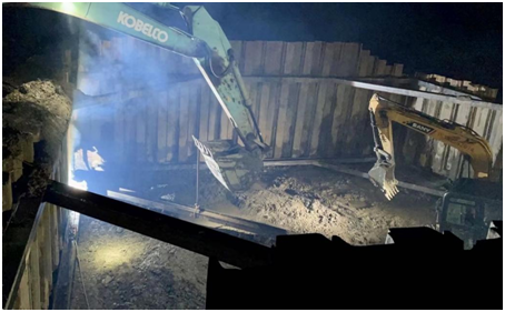 遂宁市河西应急水源临时连通保供工程:为尽早实现凤台水厂向河东二期供水,发展城建集团不分昼夜,连续奋战两天两夜,为9月底连通河西应急管道达到通水目标加紧施工,目前堤防内部分已全部完成,积极抢抓涪江河床深基坑内管道连接。