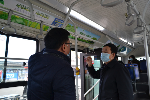 2021年1月29日,公司党委副书记、监事会主席郭思楚带队深入公交公司开展春运安全与疫情防控节前大检查。公交公司党总支书记、执行董事侯向军陪同检查。