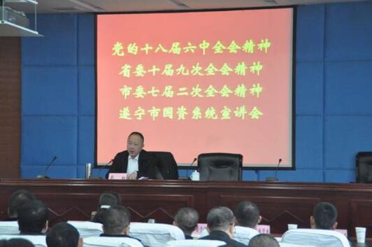 12月20日下午,遂宁市国资系统在市委党校南四楼会议室召开党的十八届六中全会、省委十届九次全会和市委七届二次全会精神宣讲会,市委宣讲团成员、市国资委主任蔡虹同志对中、省、市全会精神作了精彩宣讲,市国资委党委副书记、副主任刘泽斌同志主持会议。各区县、园区国资委(局、办)主要负责人、纪检组组长,党组织隶属市国资委党委管理的中、省在遂国有企业党组织主要负责人、纪检负责人、党群部主任、纪检监察室主任,各市属国有企业领导班子成员及中层以上干部,国资委机关全体干部职工参加了会议。