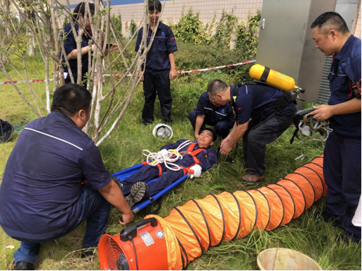 演练共分四个阶段,一是副总经理唐小平作动员讲话,强调演练注意事项,要求以演练发现问题、提升应急处置能力;二是完成维修安全准备和评估工作,达到作业条件后下井开展设备维修;三是维修人员模拟在井下发生窒息休克,现场安全员立即按照预案将其搬至通风处采取急救措施并拨打120急救电话;四是医护人员到场对休克人员进行专业施救,同时对全体参演人员开展厂区常见的高空坠落、毒害气体休克、溺水窒息等人身伤害预防知识和急救培训。通过此次演练,进一步规范了厂区安全生产作业管理,提升了员工的安全意识和人身伤害应急自救能力,为厂区安全生产工作提供了保障。