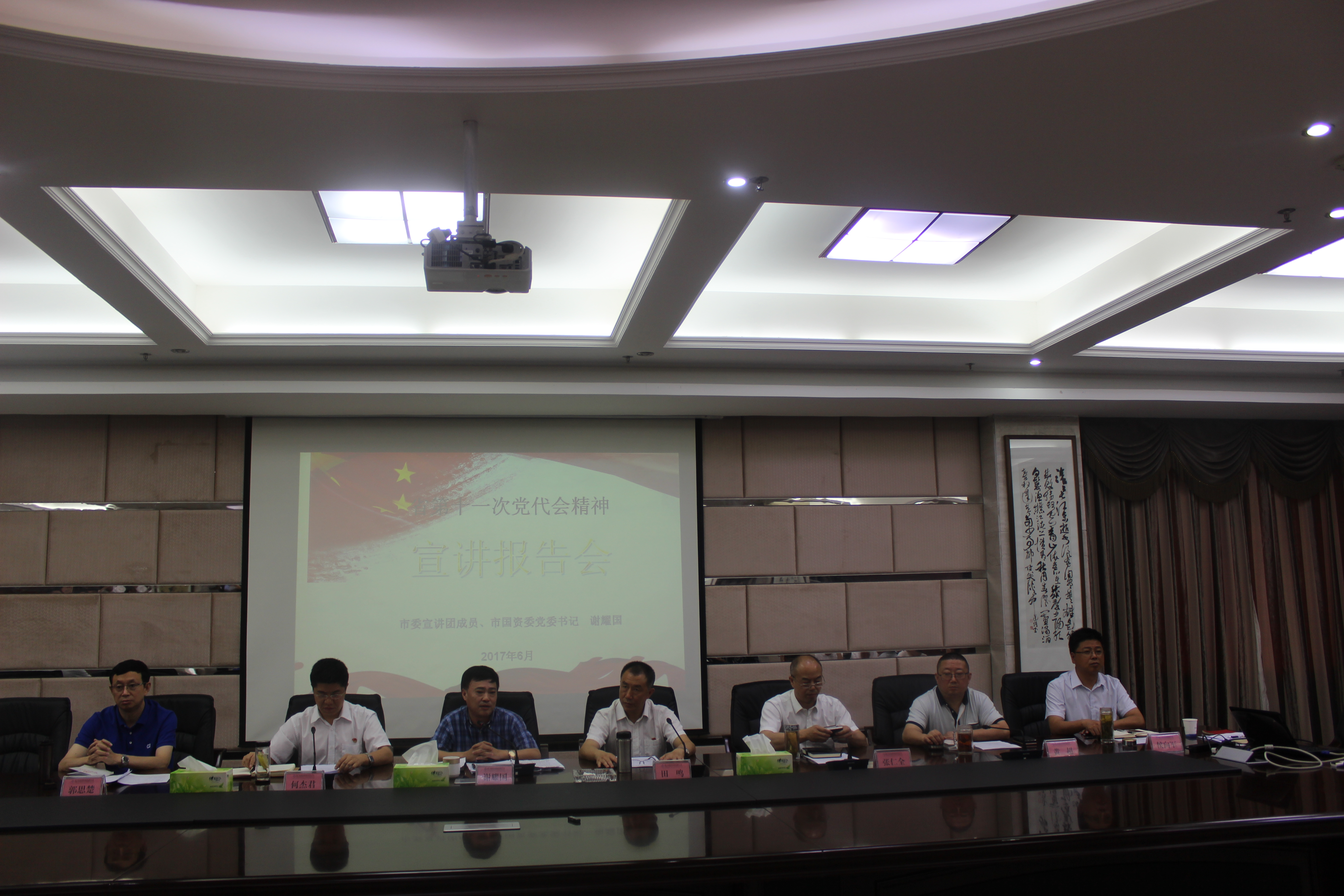 6月20日,市委宣讲团成员、市国资委党委书记谢耀国同志在市委党校南四楼进行示范宣讲。