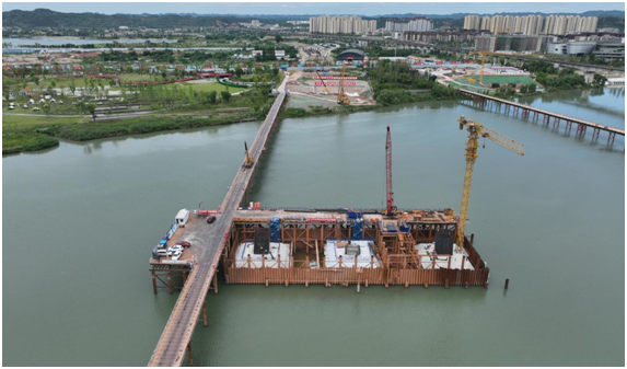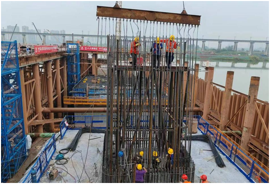此次完成的39号主墩承台,浇筑混凝土约395方,全部主墩承台总浇筑量约10050方,施工人员克服水域流量大、水位季节性变化大、安全管控风险大等不利因素,提前10余天完成节点性目标,为后续主桥上部结构施工奠定良好基础。