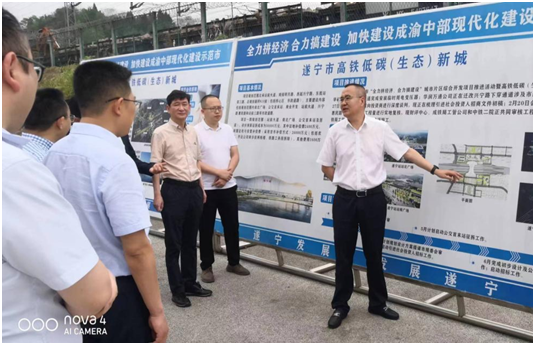 高铁低碳(生态)新城项目是遂宁市7个城市片区综合开发项目之一,总投资约120亿元,建成后将是集金融商务、科技创新、文旅消费等功能于一体的城市宜居地,与成、渝等周边城市形成半小时高铁通勤圈。现场,周晓东一行了解高铁低碳(生态)新城项目相关建设工作并听取了项目规划和招商引资情况的汇报。