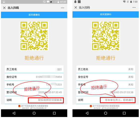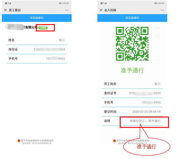 员工信息提交登记并通过单位负责人审核后,在单位门禁位置扫码出入,如图所示: