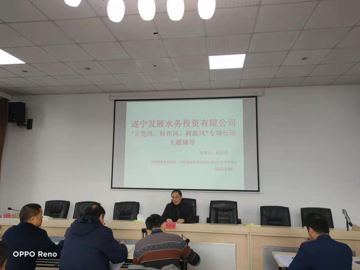 为贯彻落实集团“正党风、转作风、树新风”专项行动安排部署,2月25日下午,发展水务公司组织召开“正党风、转作风、树新风”专项行动主题辅导会,邀请市国资委党委委员、市纪委监委驻市国资委纪检监察组组长梁烈通同志作主题辅导。发展水务公司领导班子全体成员、中层干部及部分职工参加辅导。
