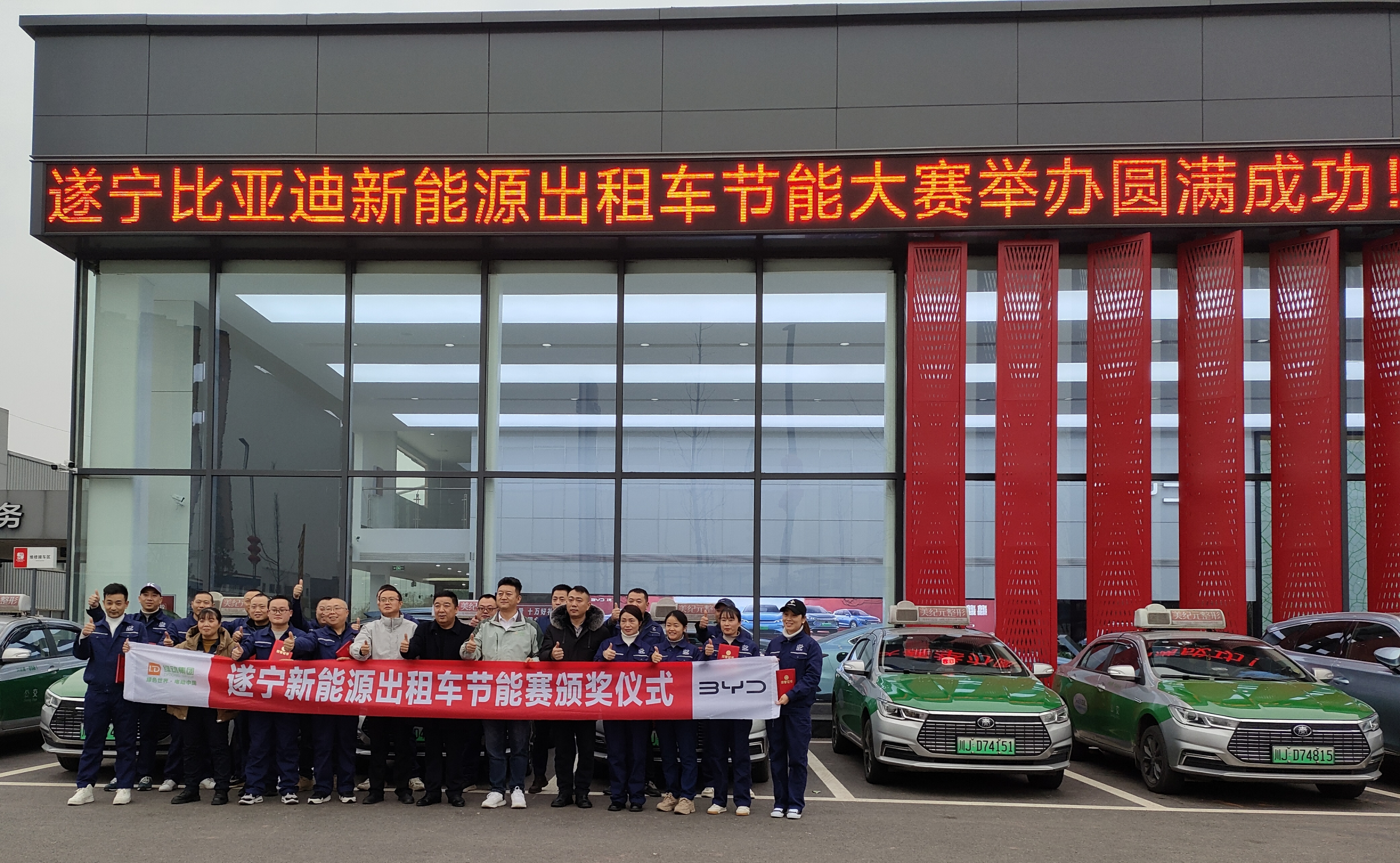 2024年1月5日,由遂宁遂州通有限公司、遂宁绿动天恒新能源汽车销售服务有限公司联合主办的首届“遂宁新能源出租车节能大赛暨颁奖仪式”在比亚迪天恒4S店举办。