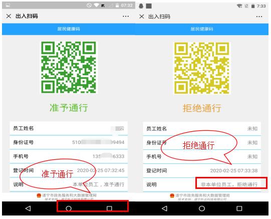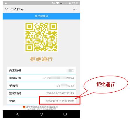 各个企业要由专人严格管控自己出行二维码,将出入码置于企业门禁位置,严格实行员工扫码出入,绿码准予通行,黄码,红码拒绝通行,如图所示: