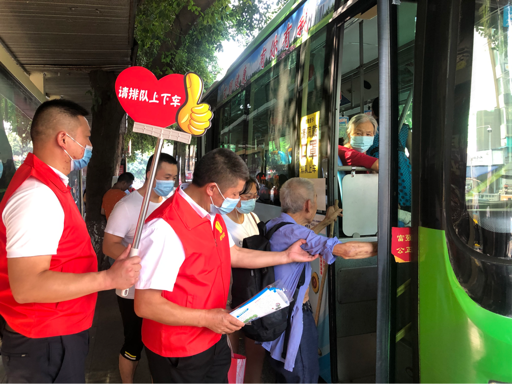 “请大家自觉排队上车,注意安全”“请让老人先上车”……今天,一批手执红色提示牌的公交志愿者正在公交站台反复提醒和引导候车市民有序、文明乘车出行。2020年8月28日,市公交公司组织开展“排队上下车、主动礼让座”主题活动,在客流密集的公交站点及周边用劝导、引导、派发文明倡议宣传单等行动传递文明精神,引导市民文明出行。