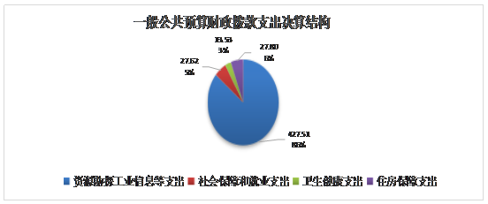 2022年一般公共预算财政拨款支出496.46万元,主要用于以下方面:社会保障和就业支出27.62万元,占5.56%;卫生健康支出13.53万元,占2.73%;资源勘探工业信息等支出427.51万元,占86.11%;住房保障支出27.8万元,占5.60%。