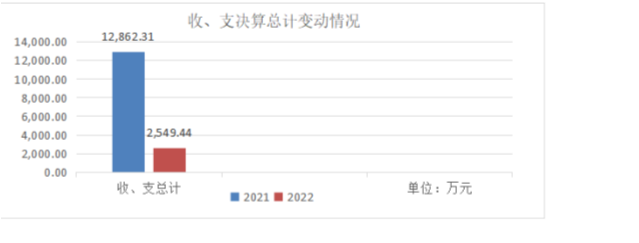 2022年度收、支总计2549.44万元。与2021年相比,收、支总计各减少10,312.87万元,下降80.18%。主要变动原因是本年度拨付企业注册资本金减少。