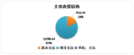 2022年本年支出合计2549.07万元,其中:基本支出450.44万元,占17.67%;项目支出2098.64万元,占82.33%;上缴上级支出0万元,占0%;经营支出0万元,占0%;对附属单位补助支出0万元,占0%。